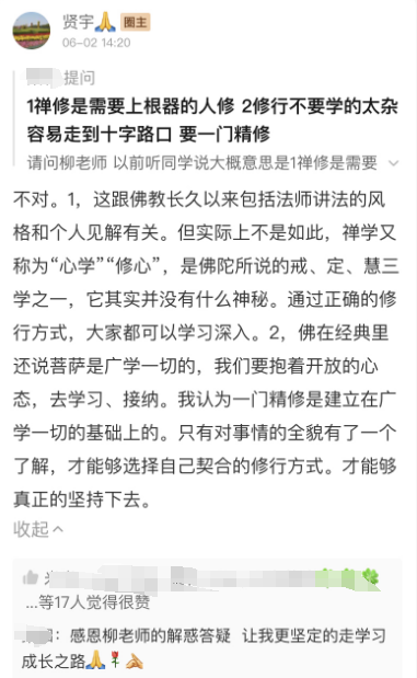 定期禅修答疑:坚持打卡,柳老师定期邀请禅修学员进行连麦交流)