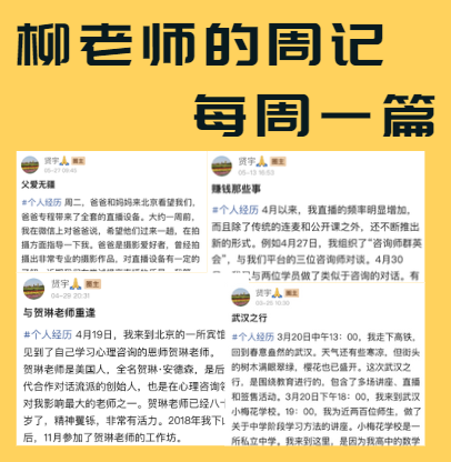 你可以查看柳智宇老师分享的传统文化与心理学周记,与柳智宇老师来一场心灵对谈。