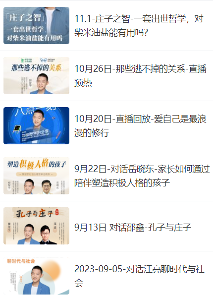 你还可以随时查看柳智宇老师的精品直播回放,从大咖对谈、咨询室故事中收获只属于你的生命感悟。